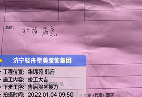 貴府的工程已全部圓滿竣工并通過了竣工驗收,感謝您在整個過程中對于我們的理解、支持和包容。輕舟美住裝飾王洪綱工作室提前恭賀您和家人喬遷新居,恭祝您和家人生活幸福美滿、事業蒸蒸日上。